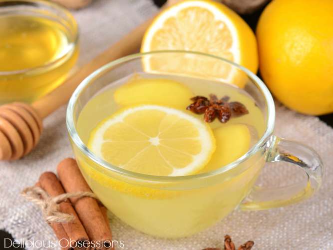 - Nehmen Sie 1 TL rohen Honig und mischen Sie es mit 2 TL Saft einer frischen Zitrone in einem Glas mit lauwarmen, gefilterten Wasser.