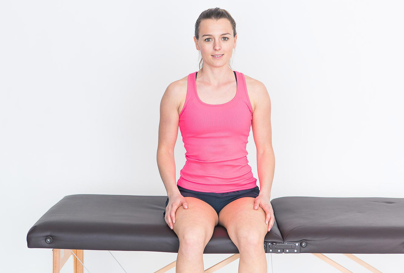 Schritt 1: Setzen Sie sich auf einen Stuhl und halten Sie das Knie im 90° Winkel gebeugt.