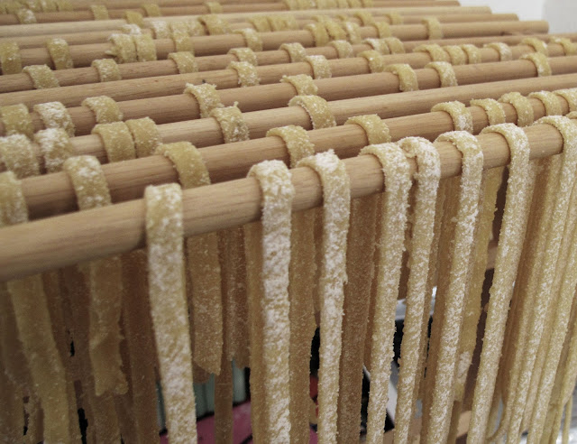 - Danach schneiden Sie den Teig in feine Streifen z.B. in Fettuccini breite und genießen diese mit Ihrer Lieblings-Soße.